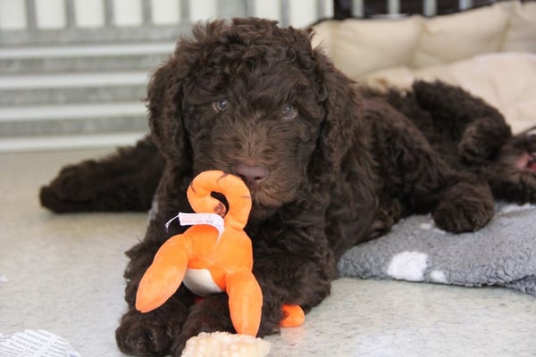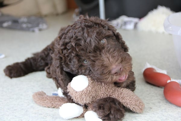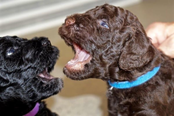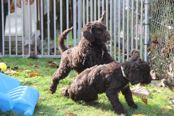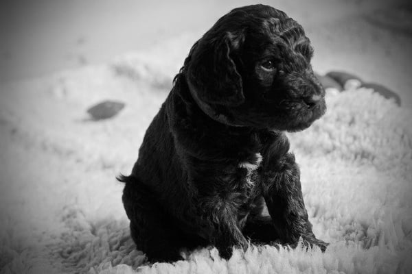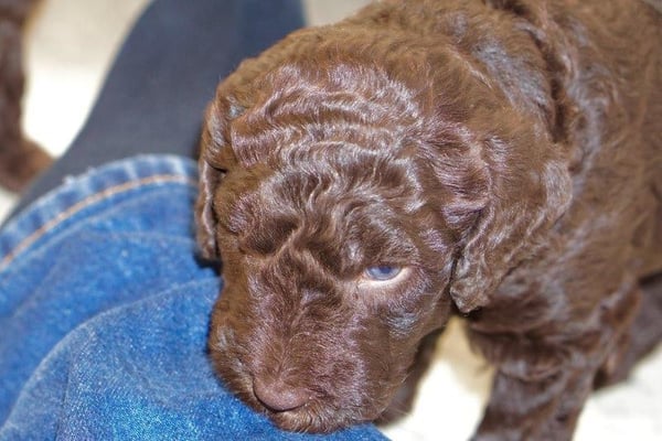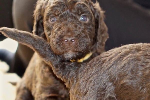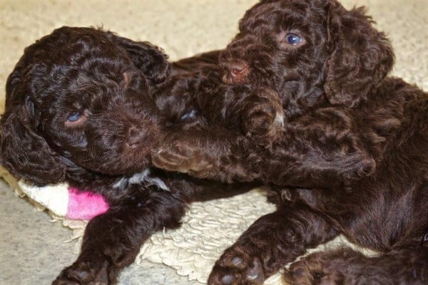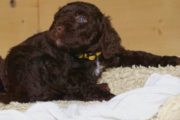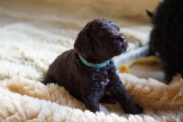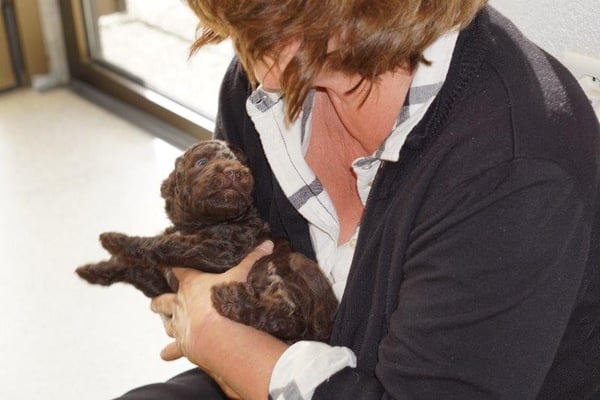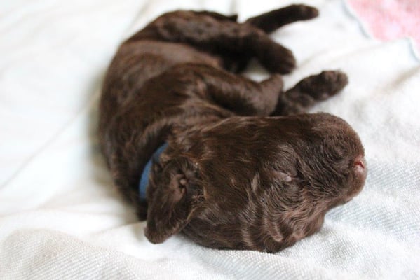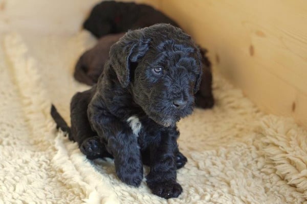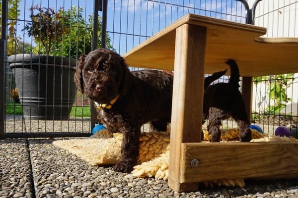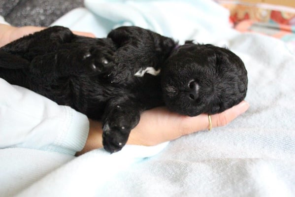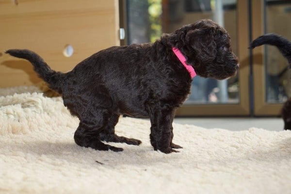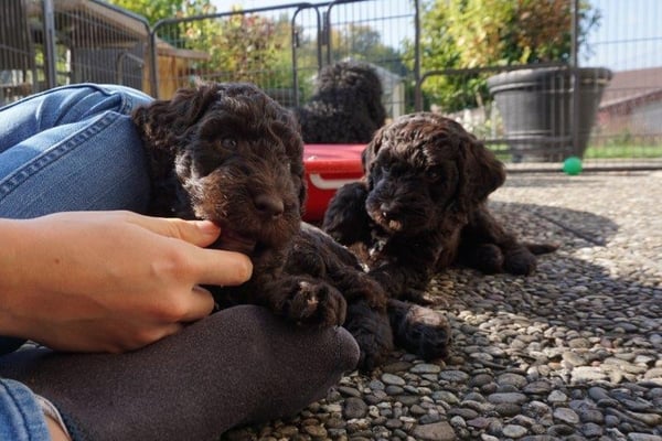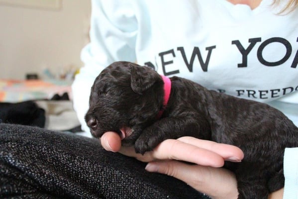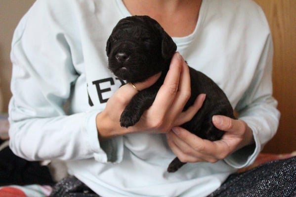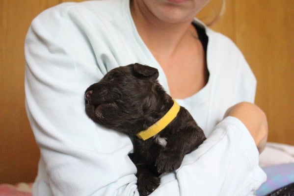 Gut zwei Wochen sind die Welpen schon alt. Die Augen sind geöffnet und sie können nun auch hören, was um sie herum geht. Die ersten Schritte auf allen Vieren sind gemacht, kommt viel Leben in die