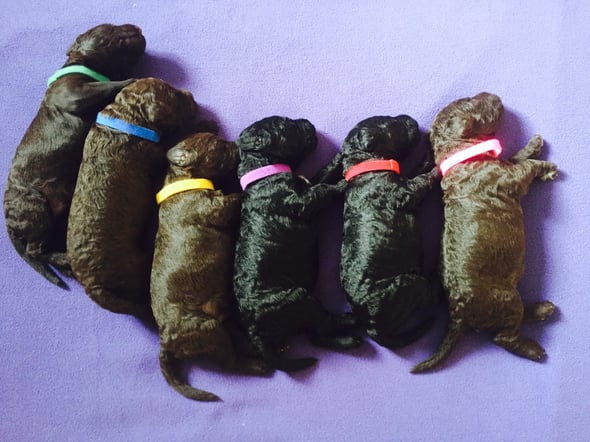 Heute Vormittag hat Fara 6 gesunde Welpen zur Welt gebracht. Zwei schwarze Rüden, drei braune Rüden und eine braune Hündin, alle mit weissem Abzeichen auf der Brust. Mama und Babies erholen sich nun von der Geburt. Weitere Fotos folgen...