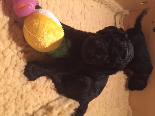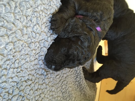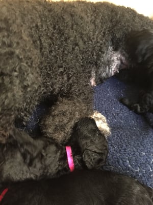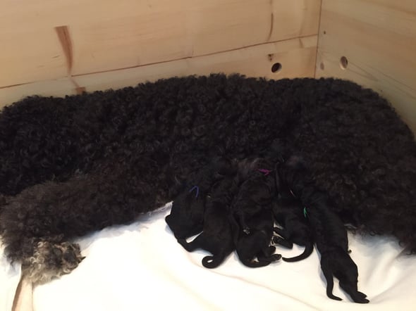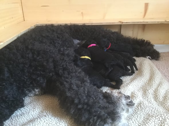 Letzte Nacht hat Easter 6 gesunde Welpen zur Welt gebracht, 4 schwarze Rüden und 2 schwarze Mädchen. Mama und Babies erholen sich nun von der anstrengenden Geburt. Weitere Fotos folgen...