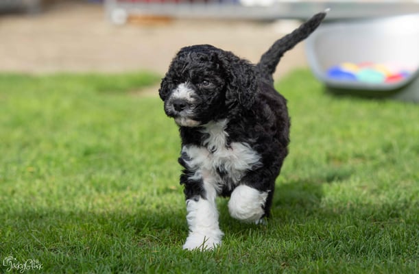- MILLIN de l'ile Romande, Hündin, schwarz-weiss